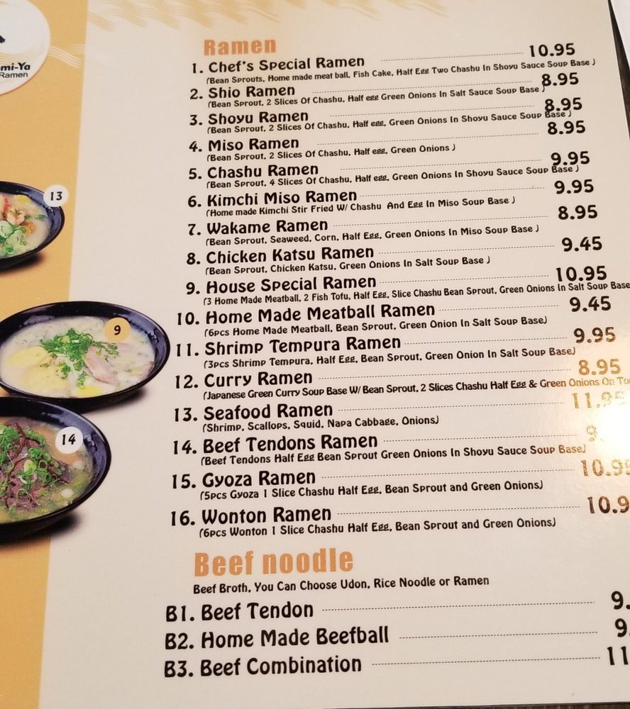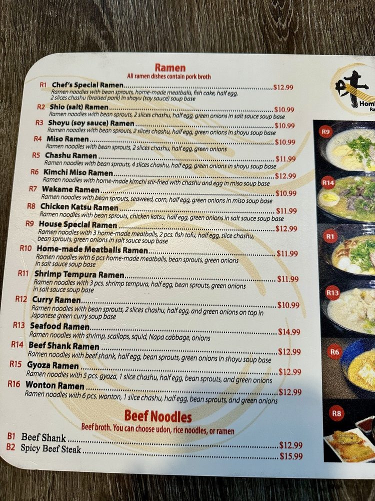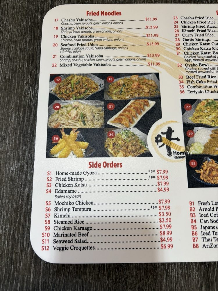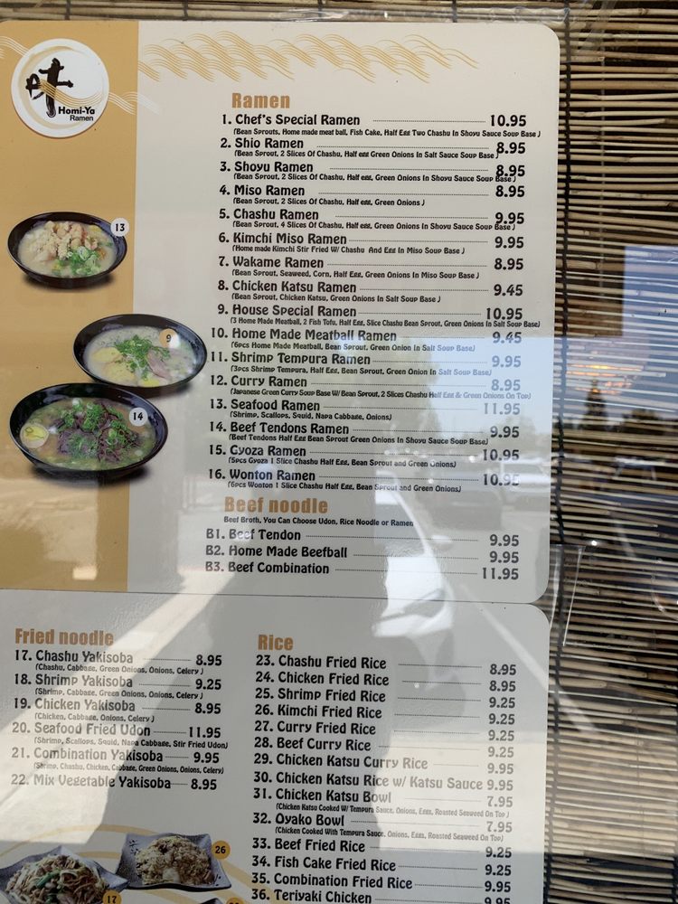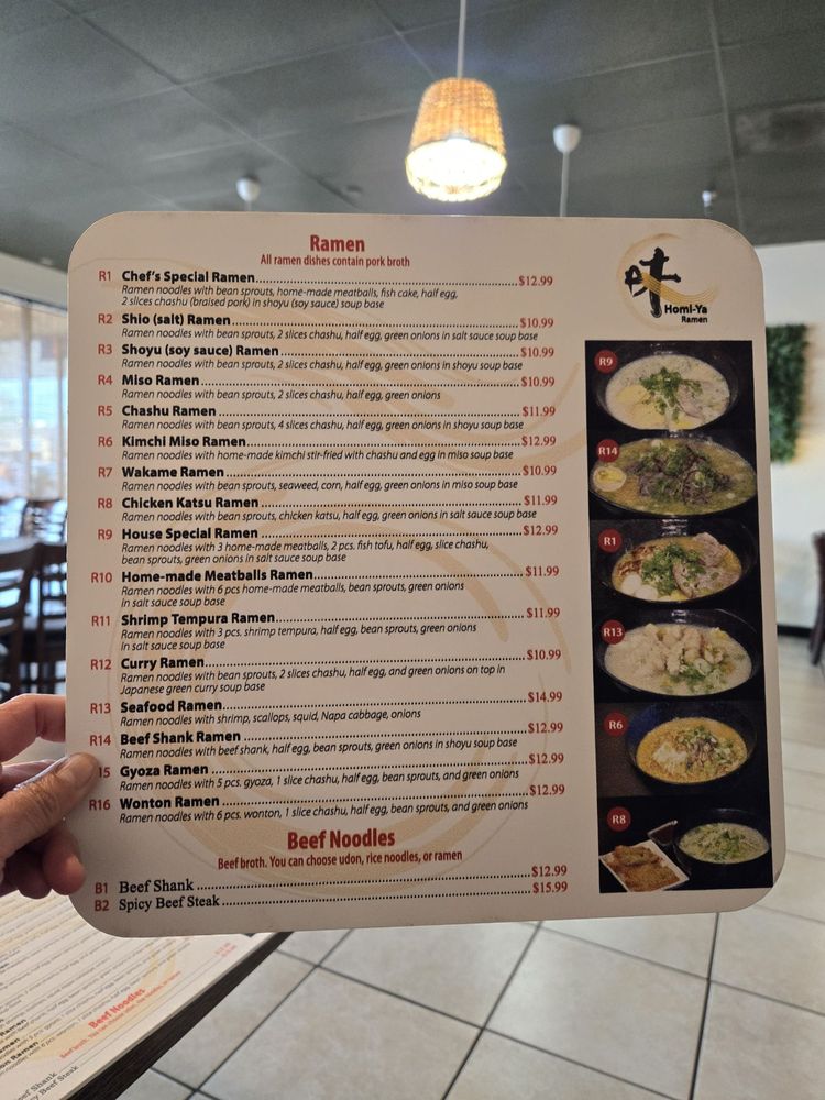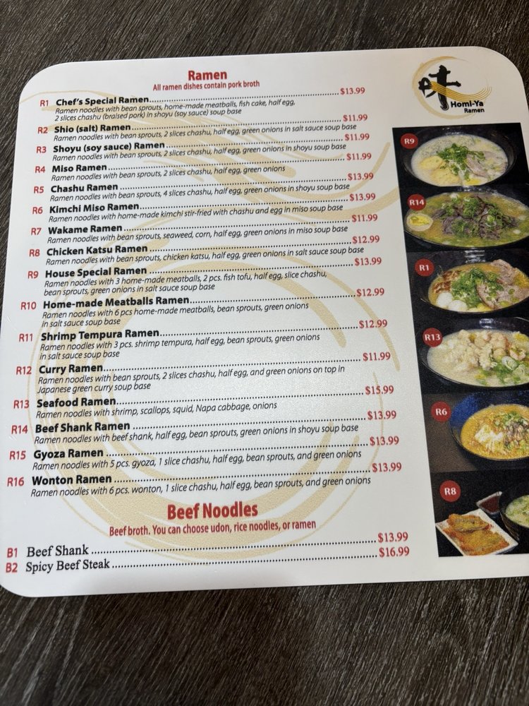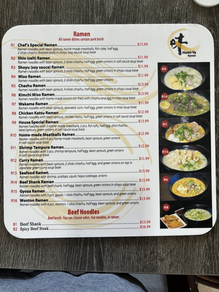 homi-ya Ramen Noodle House Menu